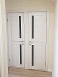 Помимо установки в проемы между помещениями, распашные двери используют для конструкций встроенных в нишу шкафов.