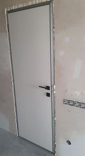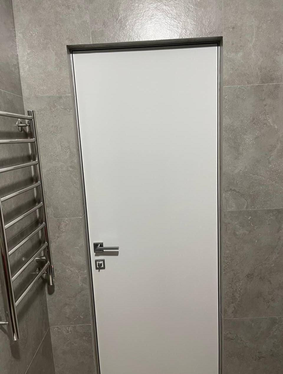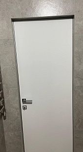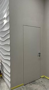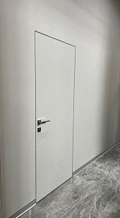 Дверь под покраску в скрытом коробе с алюминиевой кромкой. Система REVERSE - внутреннее открывание двери
