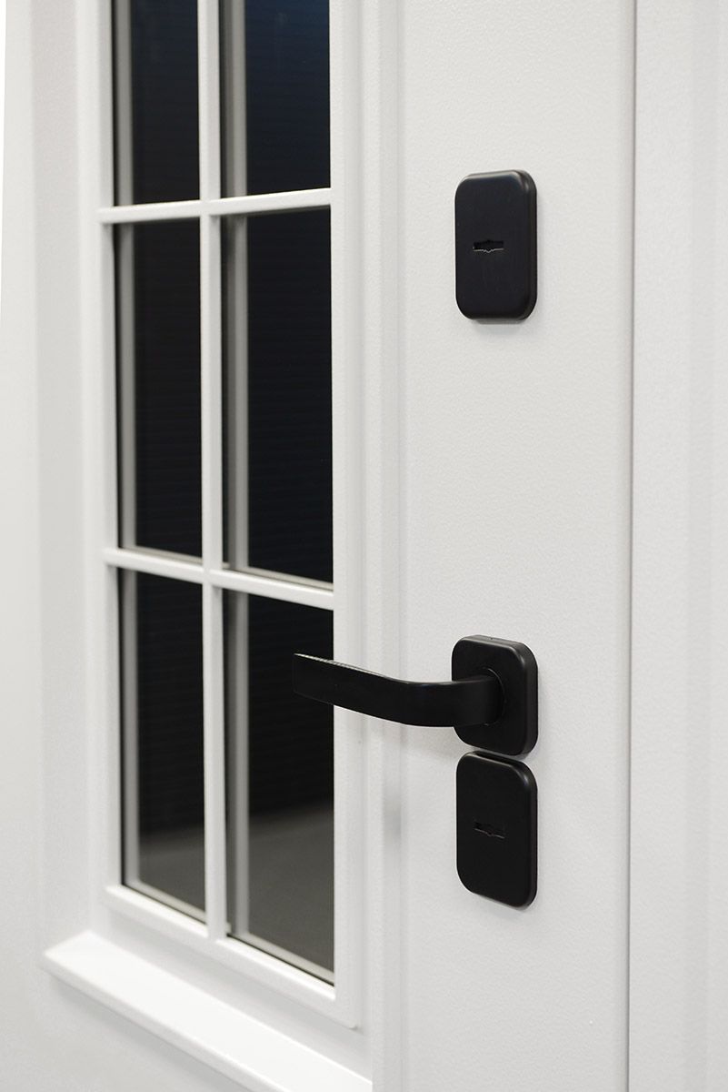 МДФ 10 мм, стеклопакет 2х камерный, внешнее стекло тонировано серебром, металлическая решетка окрашена в цвет наружной отделки
